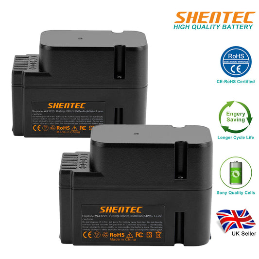 SHENTEC PLG Pack de 2 3.0AH 28V Batterie Li-ion pour Worx WG790E WG754E WG794E WG755E WA3225 WA3565