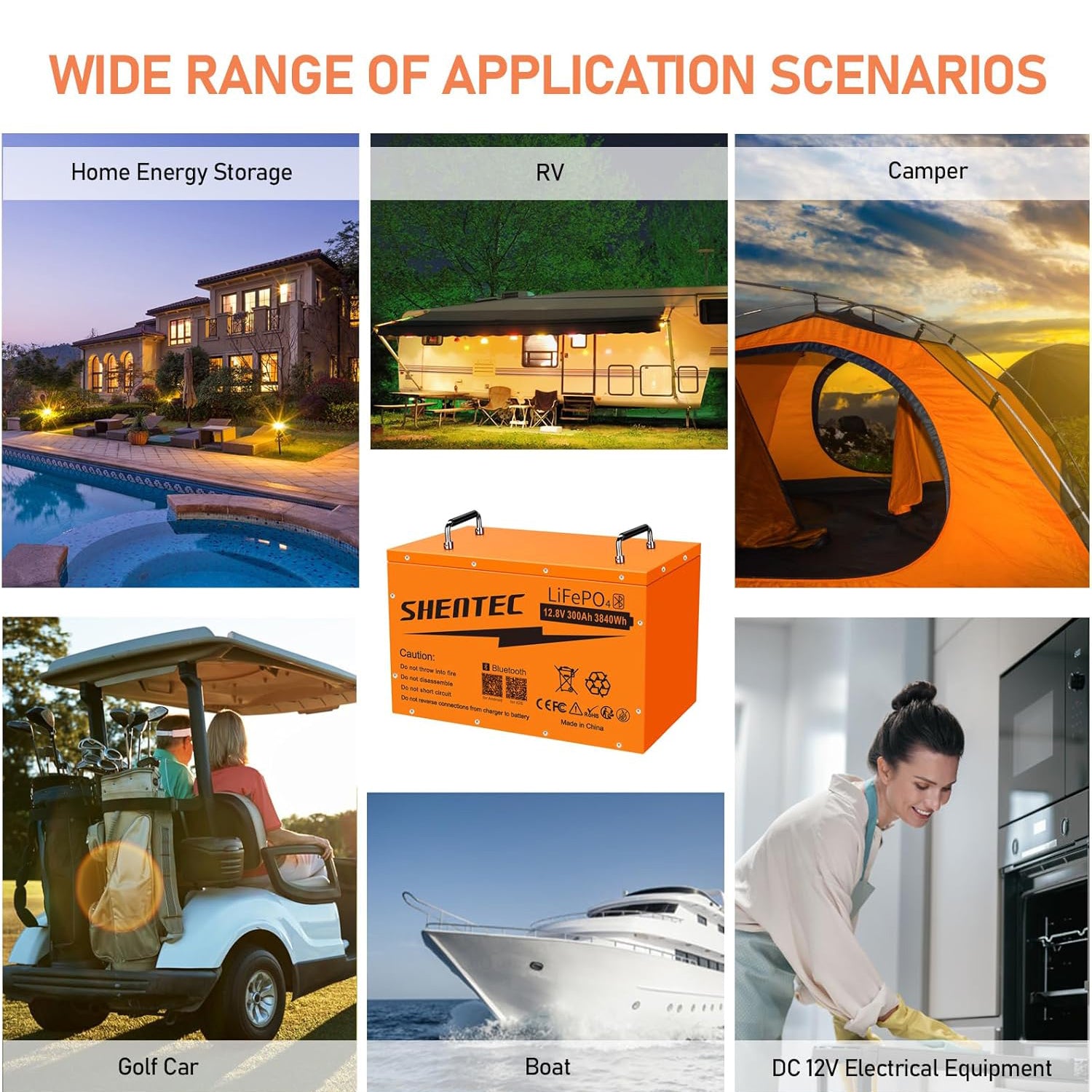 • Advanced lithium iron technology: Shentec 300Ah 12V Lifepo4 battery use grade A cells with higher energy density, more stable performance and more power. Lifepo4 battery has excellent cycle performance, fast charging and discharging, 100% discharge depth and high output power. No memory effect, it is ready to use immediately after charging. Ideal for marine, RV, caravan, car battery and off-grid energy storage applications.